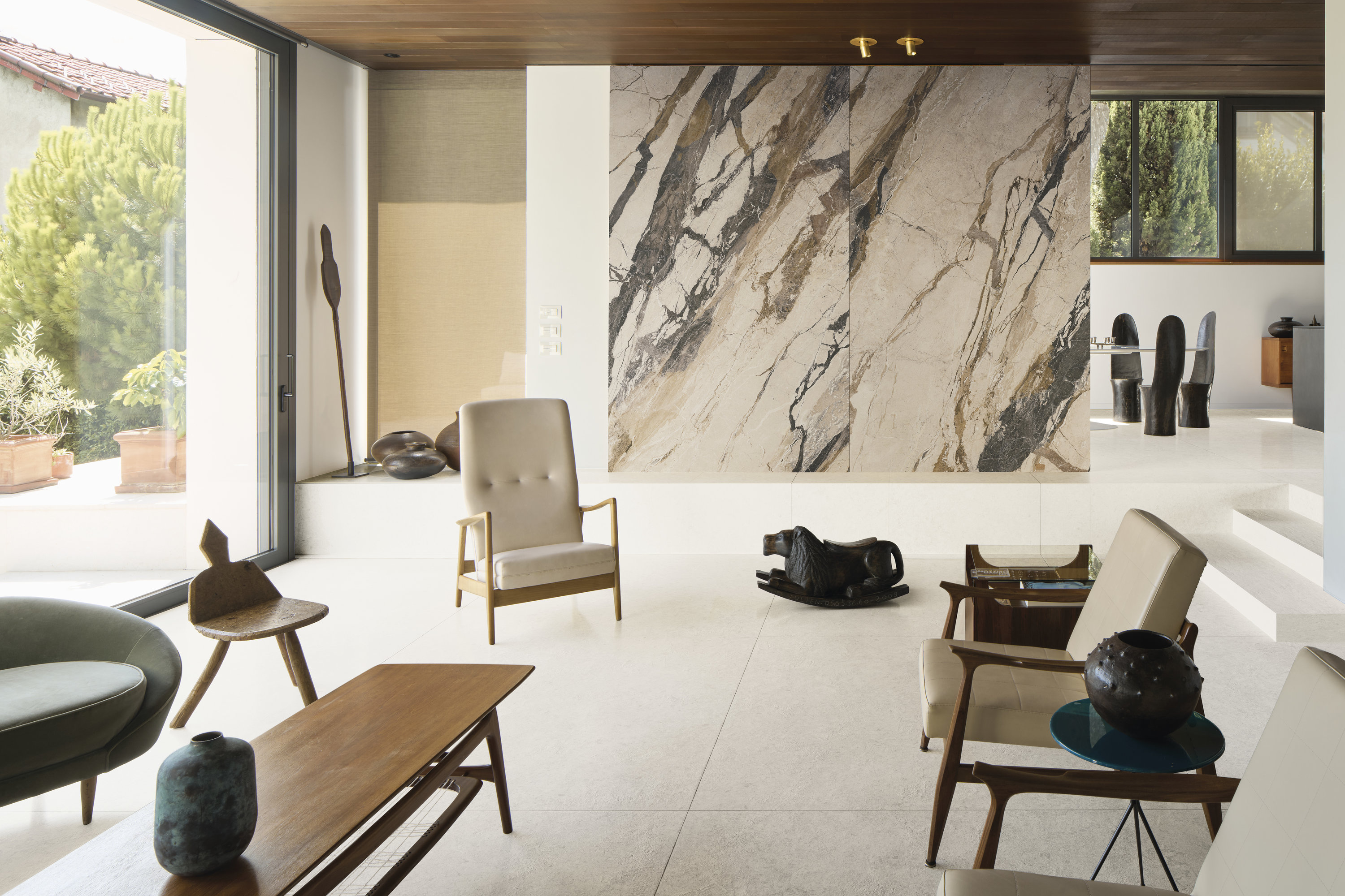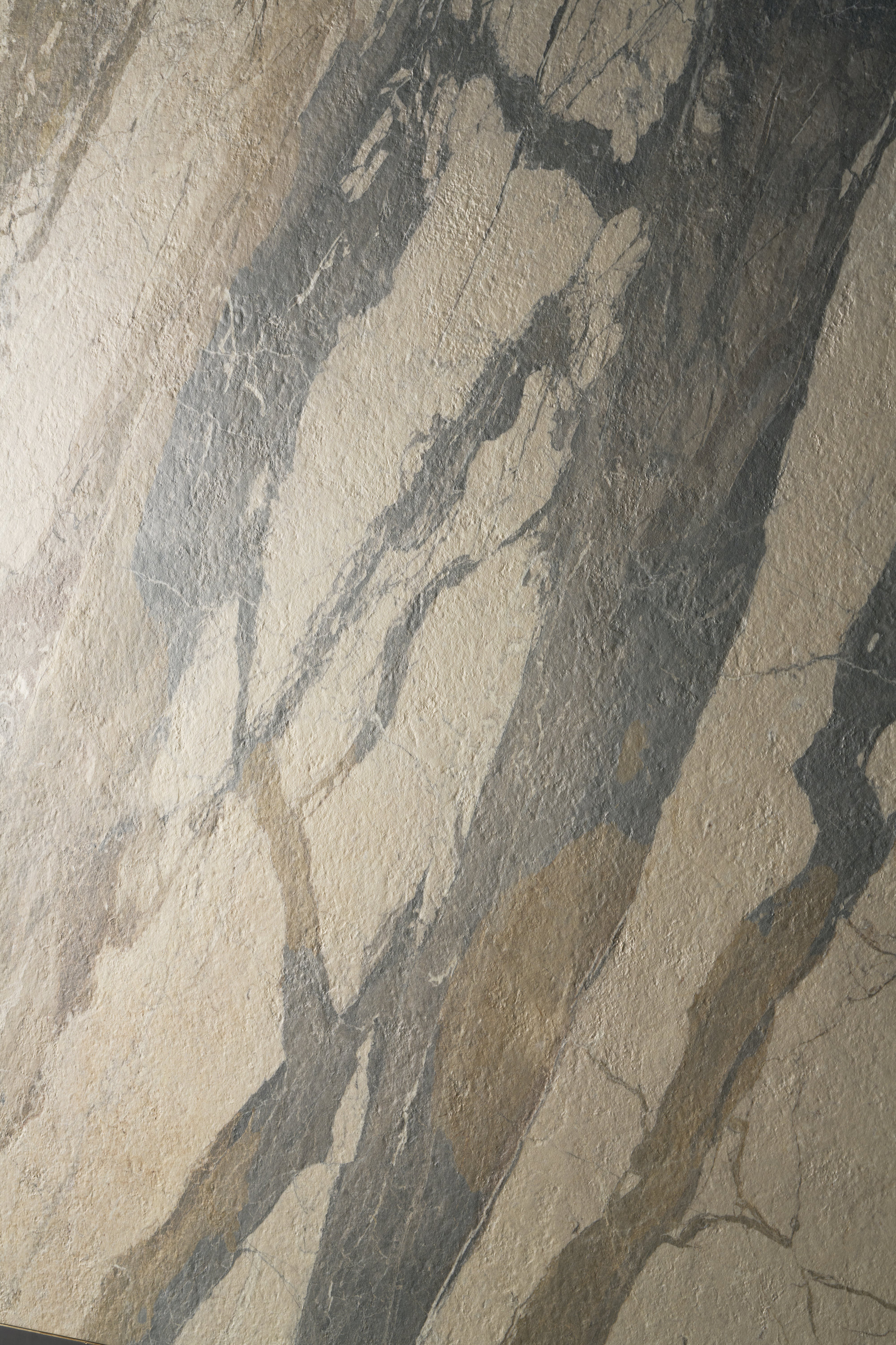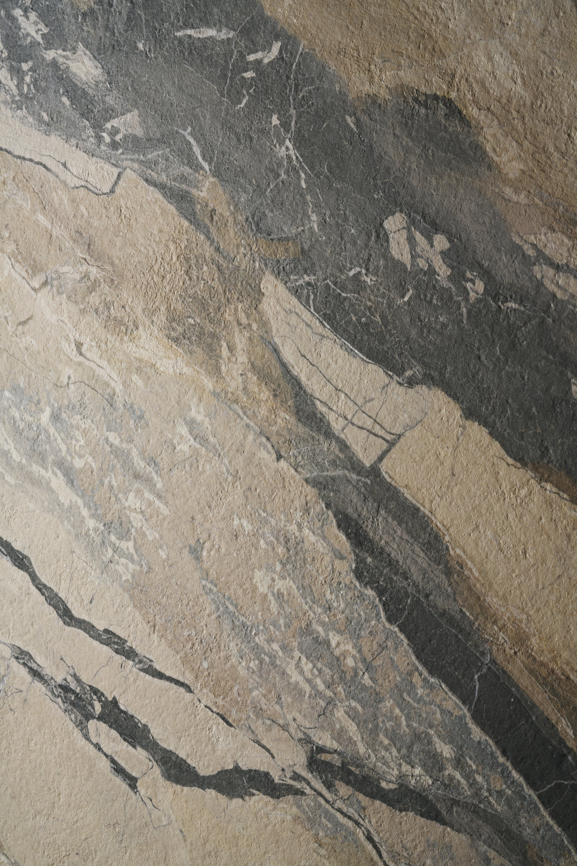 Una pietra ceramica di grande energia visiva, caratterizzata da un intreccio di venature decise che si sovrappongono su un fondo chiaro. I contrasti tra grigi, bianchi e tonalità più scure restituiscono profondità e movimento, come in una superficie in perenne trasformazione. Breccia Phoenix è pensata per chi cerca espressività e carattere, capace di diventare protagonista dello spazio. Disponibile in finitura Natural e Natural Plus, nei formati tradizionali e in lastra, porta negli ambienti un linguaggio forte e raffinato al tempo stesso. La grande lastra Breccia Phoenix è realizzata con la rivoluzionaria tecnologia a base acqua. Una novità assoluta per il settore, che coniuga sostenibilità ambientale e resa estetica di altissimo livello.