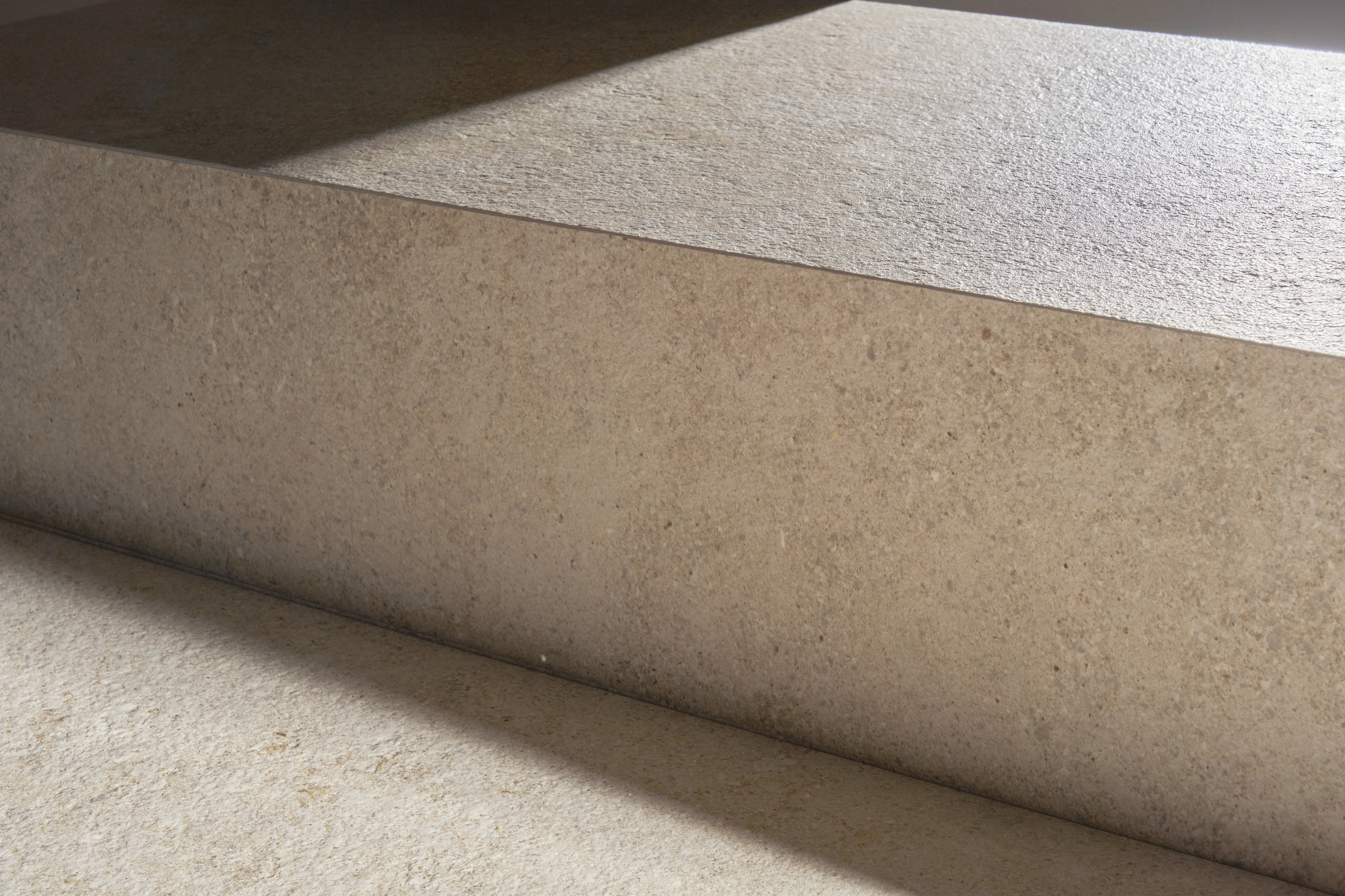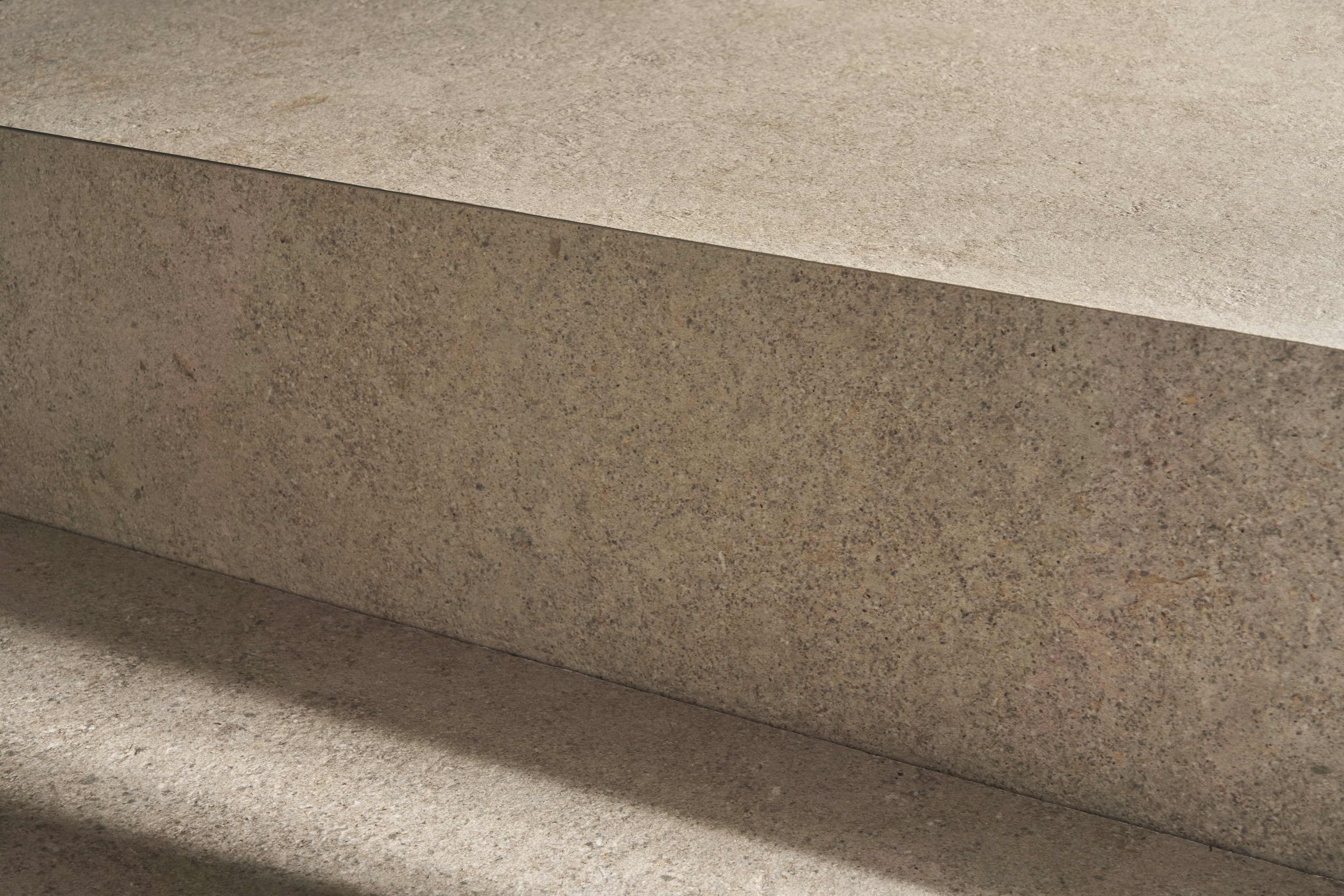 "Un beige naturale e uniforme, punteggiato da lievi ombreggiature che ne amplificano l’effetto materico. Pietra Di Fez è un colore trasversale e accogliente, adatto a progetti che richiedono equilibrio cromatico e calore discreto. Le finiture Natural e Natural Plus garantiscono versatilità d’impiego, mentre lo spessore 20 mm con Antislip apre alla progettazione di spazi esterni in continuità con gli interni. È una superficie che costruisce armonia, diventando elemento connettivo tra volumi e funzioni architettoniche.