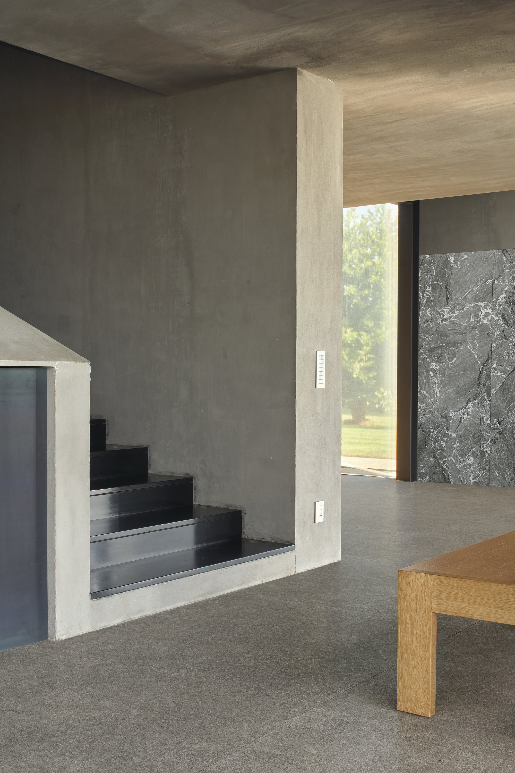 Grigio profondo, arricchito da sfumature bluastre e da una tessitura compatta che ricorda le rocce metamorfiche. Roche Bleue è una superficie densa e strutturale, che comunica solidità e rigore. La sua neutralità cromatica, arricchita da leggere variazioni minerali, la rende un fondale ideale per progetti contemporanei, capace di dialogare sia con tonalità calde che fredde. Disponibile in ceramica 8 mm con finiture Natural e Natural Plus, e in spessore 20 mm con Antislip, Roche Bleue estende la sua funzionalità anche agli spazi outdoor.
