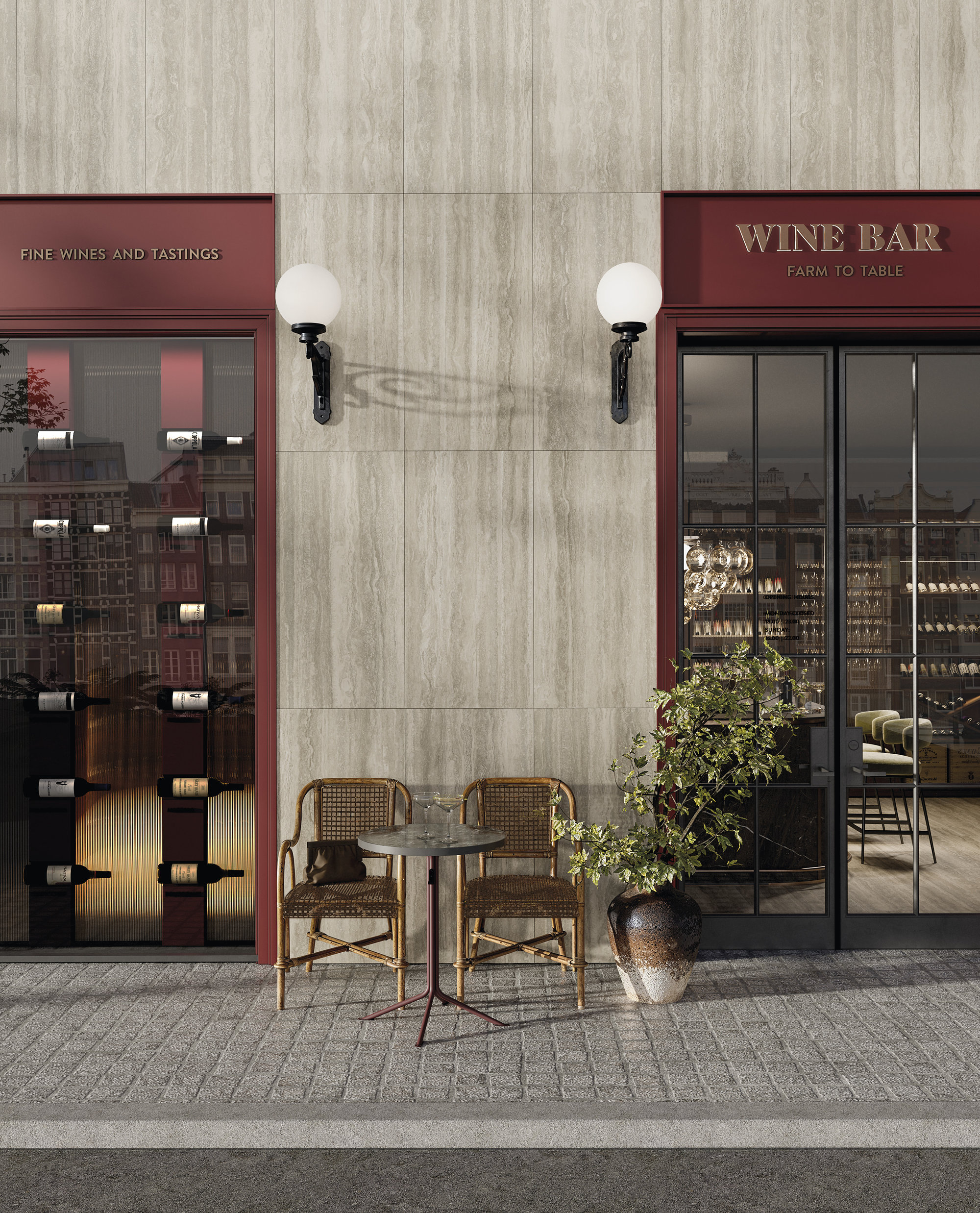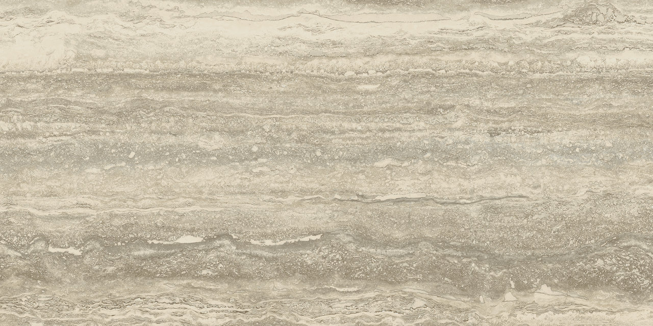 La superficie Travertino si distingue per le venature orizzontali leggere, che evocano paesaggi modellati dallo scorrere del tempo. La palette di toni caldi e neutri – dal beige al crema, dall’avorio ai grigi più soffusi – infonde un senso di equilibrio naturale e avvolgente, capace di trasformare ogni spazio in un ambiente elegante e accogliente. Un materiale che custodisce la memoria della tradizione e la restituisce in una veste attuale e contemporanea.