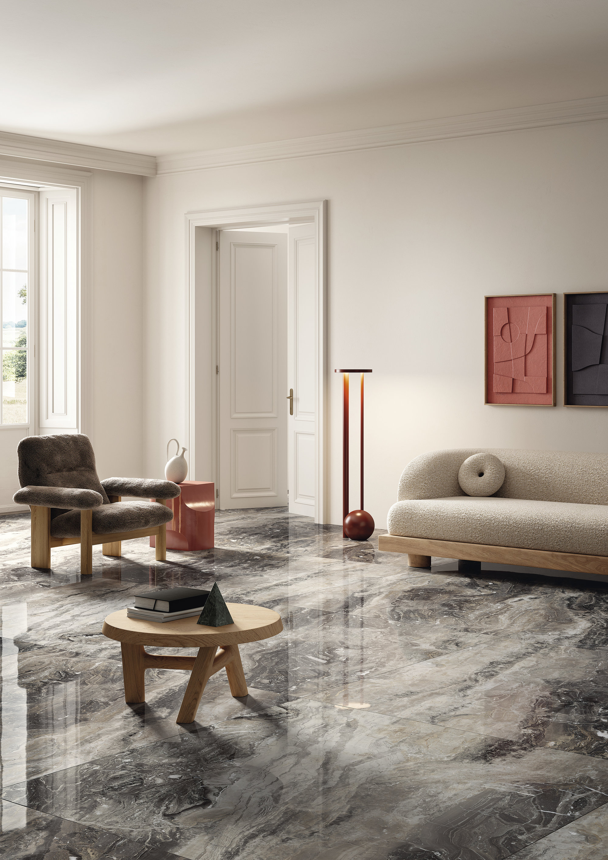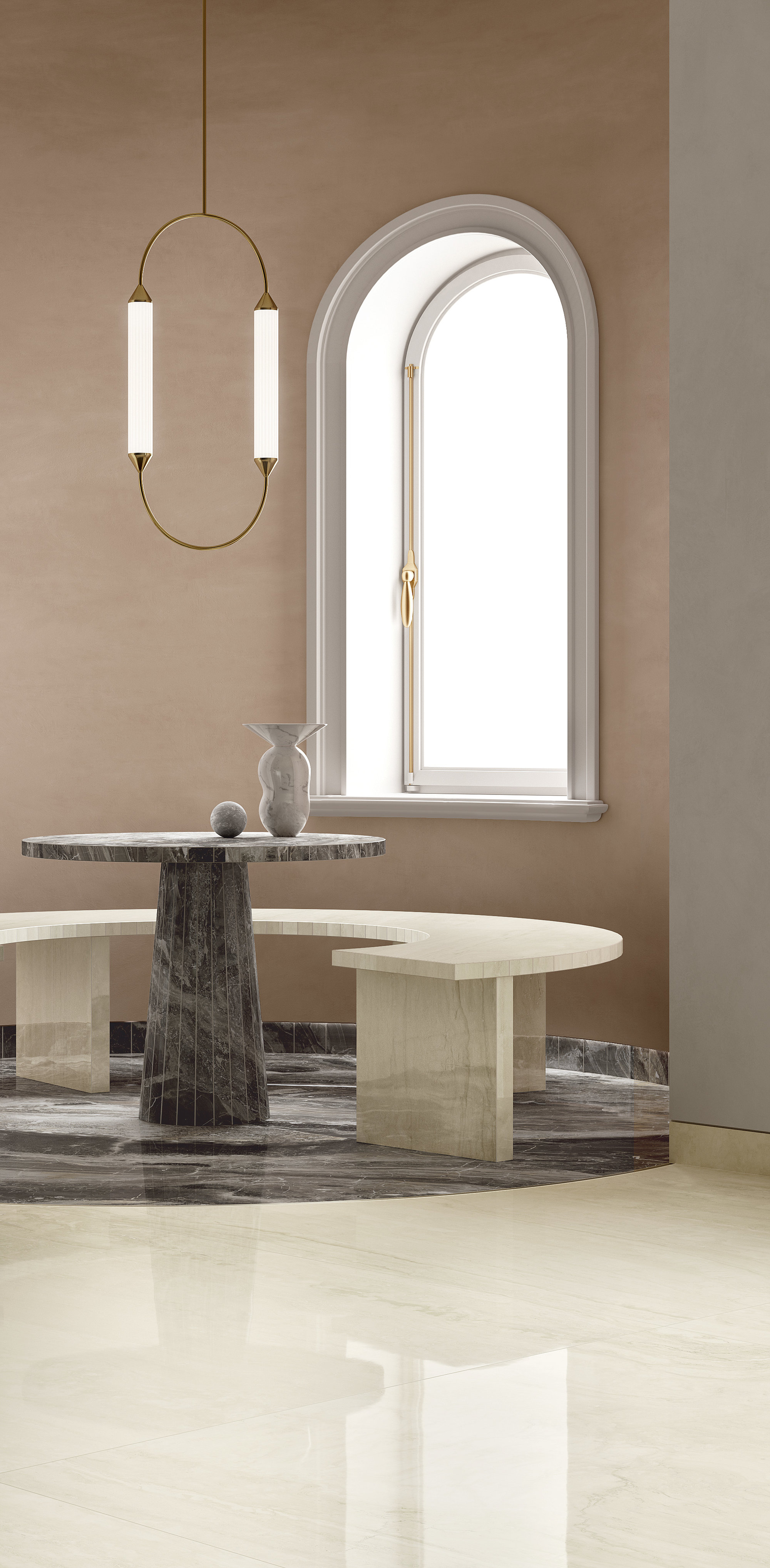 Tonalità di bianco, combinate a diverse cadenze di grigio e marrone e diradate sfumature color ocra, donano ad Orobico Arabescato un’estetica vivace e sinuosa. La finitura lucidata esalta questa superficie in tutta la sua preziosità; disponibile anche nella versione macchia aperta (book-match), Arabescato Orobico è la scelta ideale per architetture e interior di pregio, sia residenziali, che commerciali o pubbliche. Alle applicazioni a pavimentazioni e rivestimento si aggiunge anche la possibilità di personalizzare arredi e dettagli architettonici.