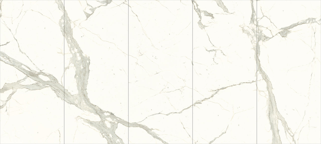 Il marmo ceramico Pure Calacatta rientra nella selezione di colori Maximum pensati per eliminare lo spreco di materiale in opera. Il formato 120x270 cm, in spessore 6 mm, è stato pensato per eliminare lo sfrido di taglio conformandosi all’altezza minima richiesta per l’abitabilità.