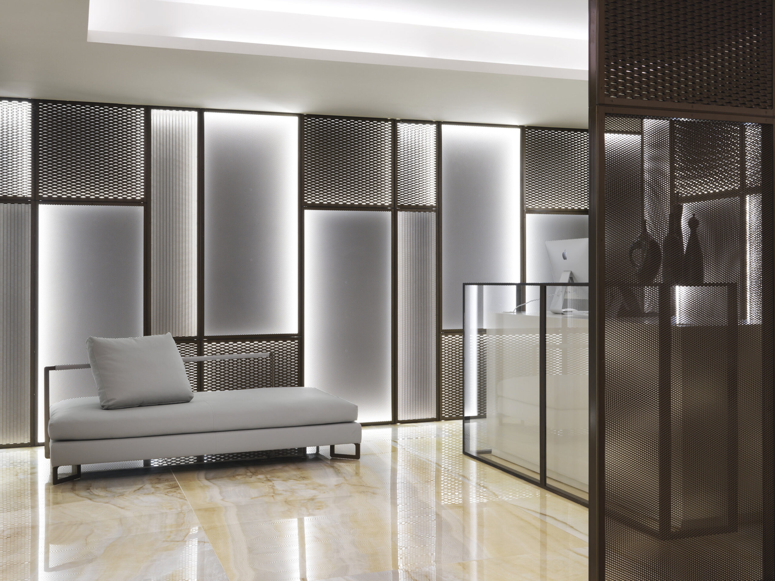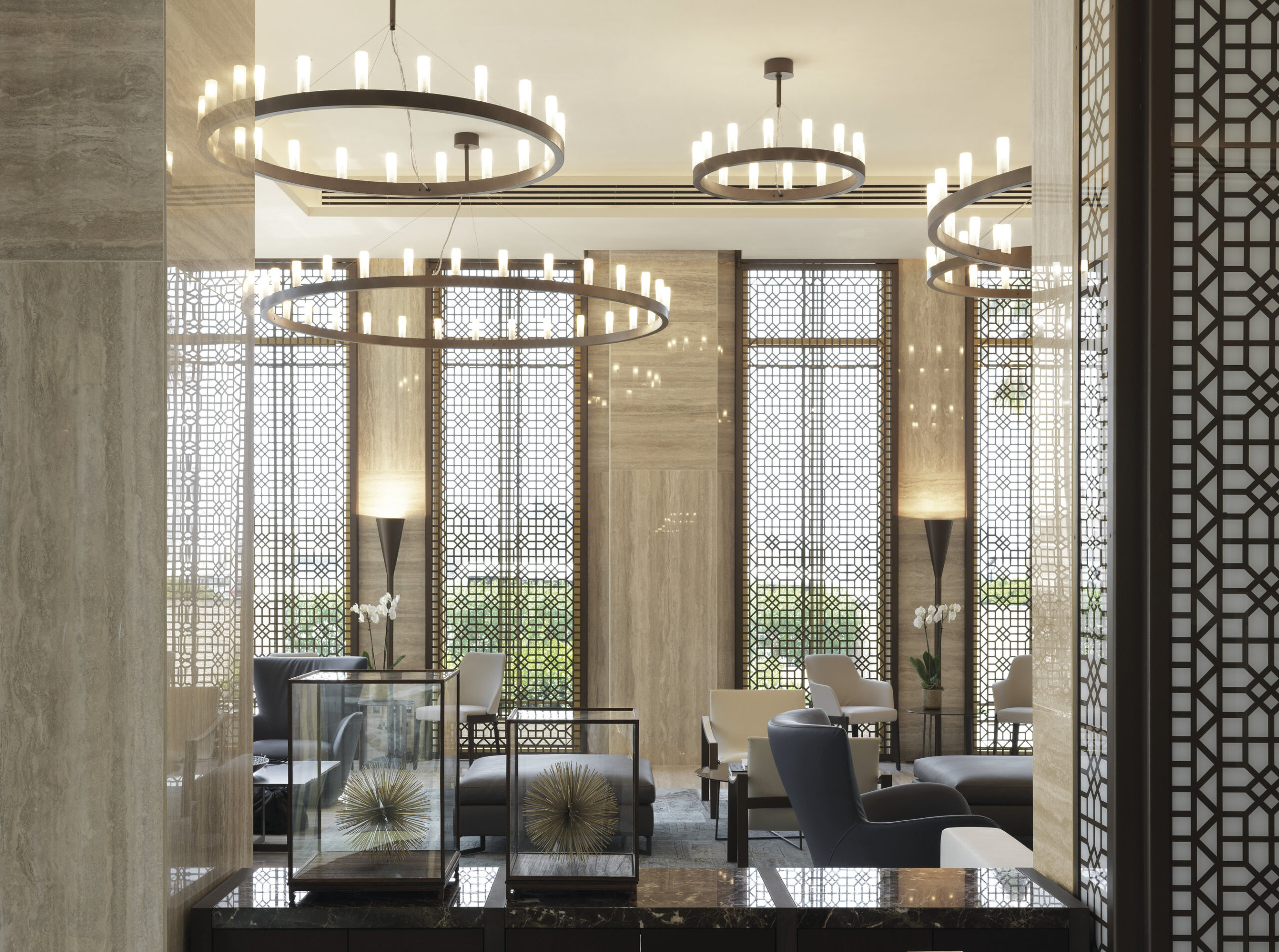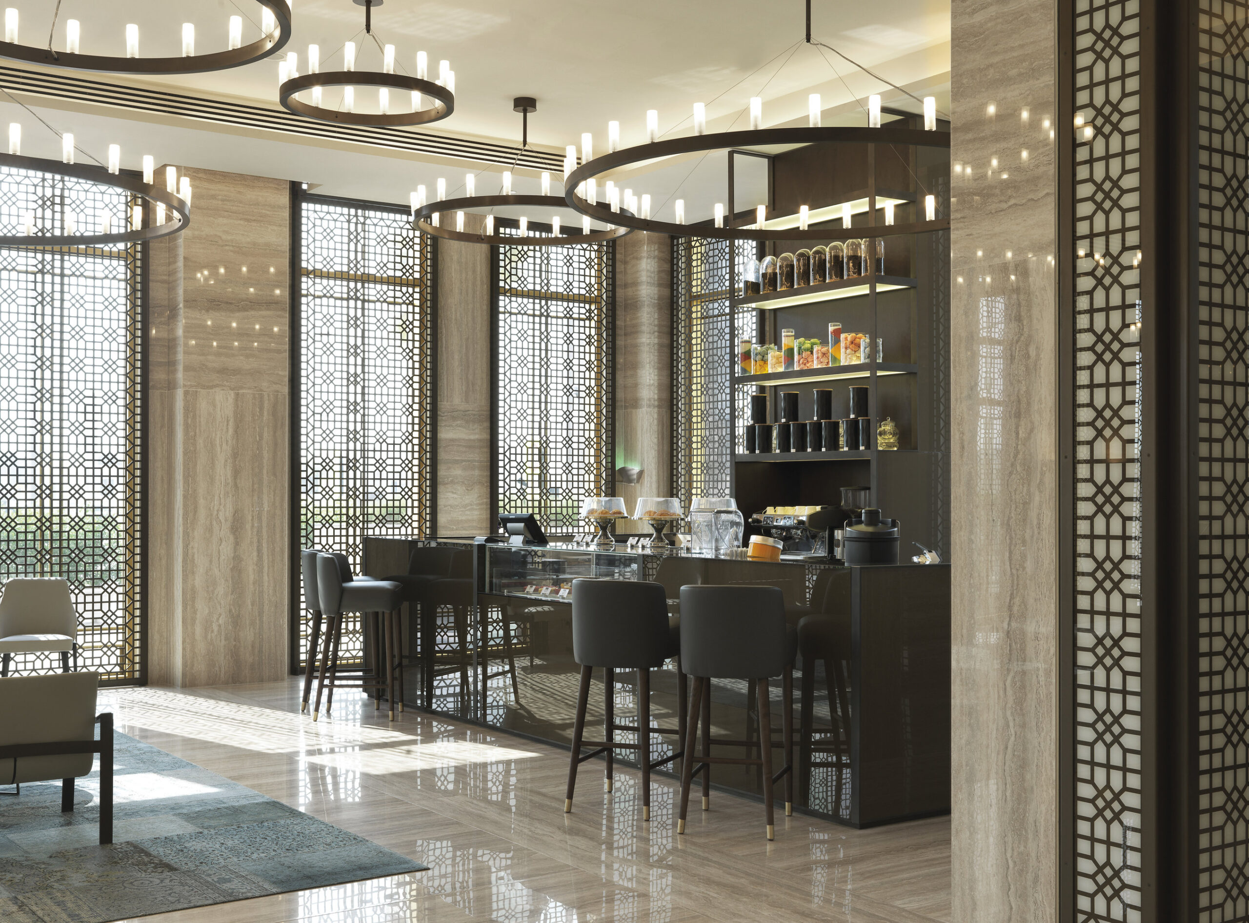 Il concept unisce tradizione mediorientale e design contemporaneo, creando ambienti sofisticati e funzionali. Per questo progetto, Nunziati ha collaborato con brand d’eccellenza, tra cui Fiandre, che ha fornito superfici ceramiche di grande formato per le aree più prestigiose.