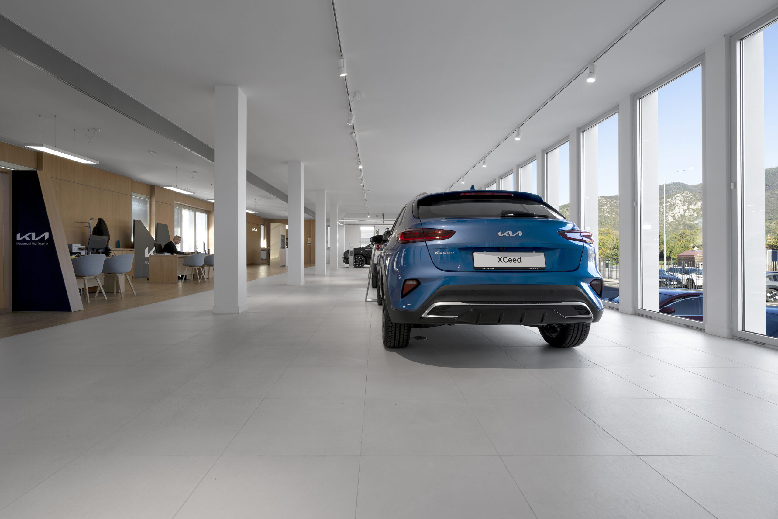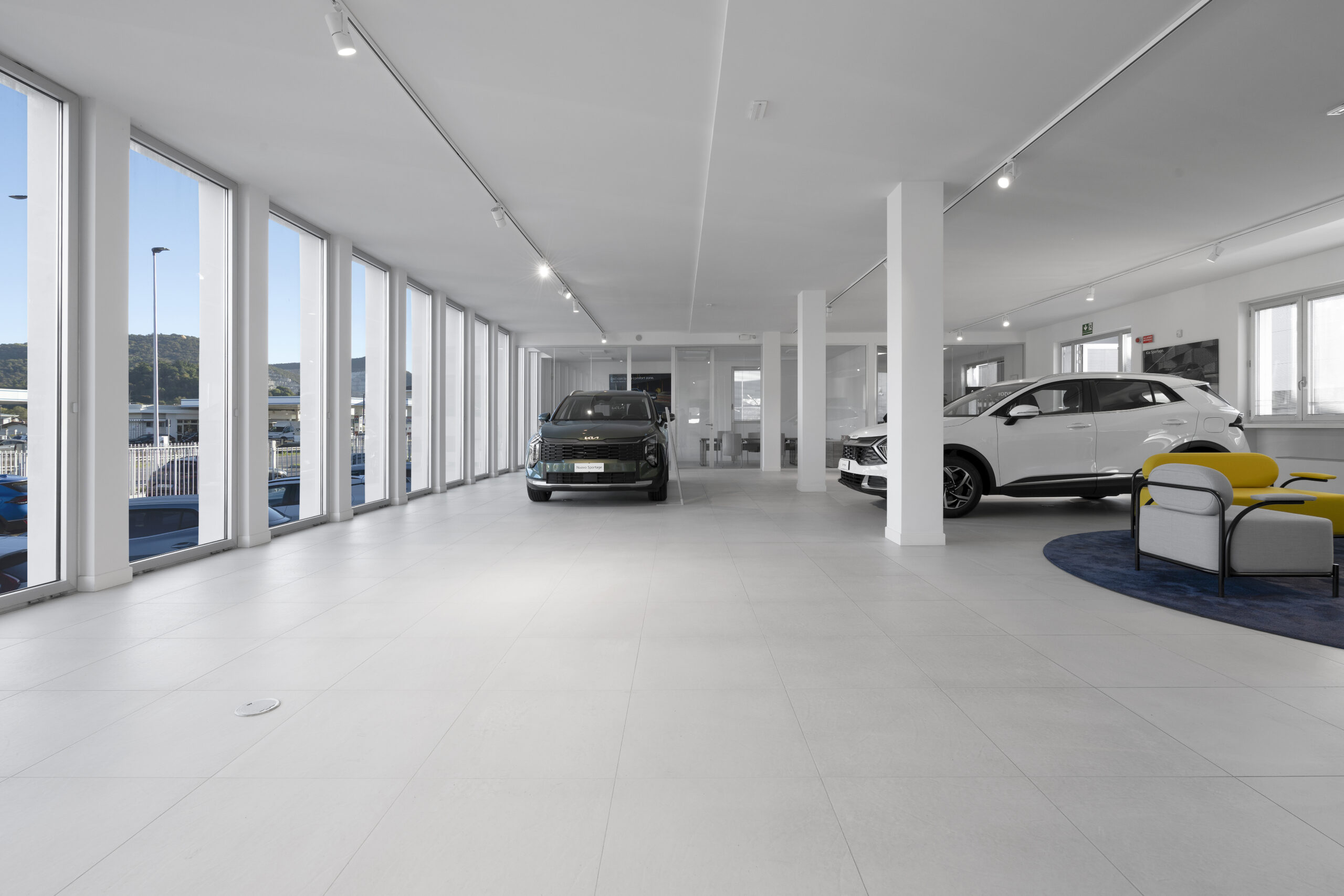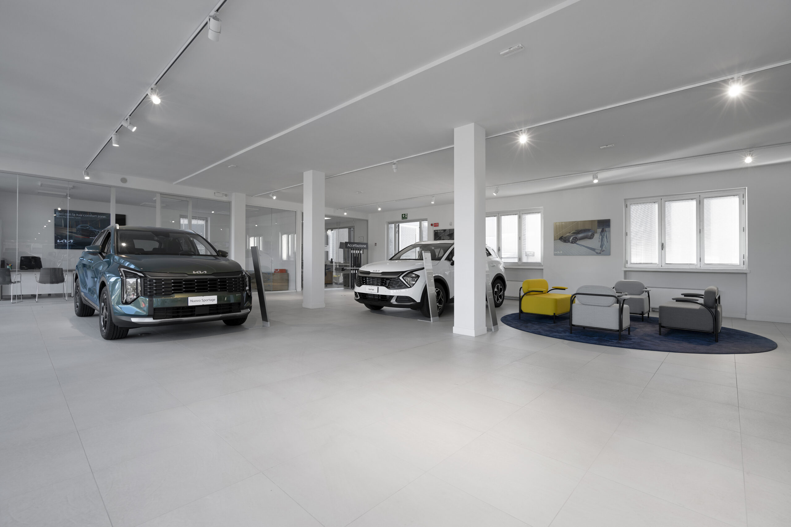 Il nuovo spazio è progettato per offrire un’esperienza cliente completa e raffinata, integrando showroom, officina e area post-vendita all’interno di un’unica struttura moderna e funzionale. Un elemento distintivo del concept retail è l’uso delle ceramiche Fiandre, che contribuiscono a valorizzare le vetture esposte, creando uno sfondo elegante e sofisticato che esalta le linee e i dettagli dei veicoli. L’obiettivo è far sentire ogni visitatore parte di un ambiente esclusivo, accogliente e altamente professionale, dove ogni elemento dello spazio contribuisce a mettere in risalto il prodotto.