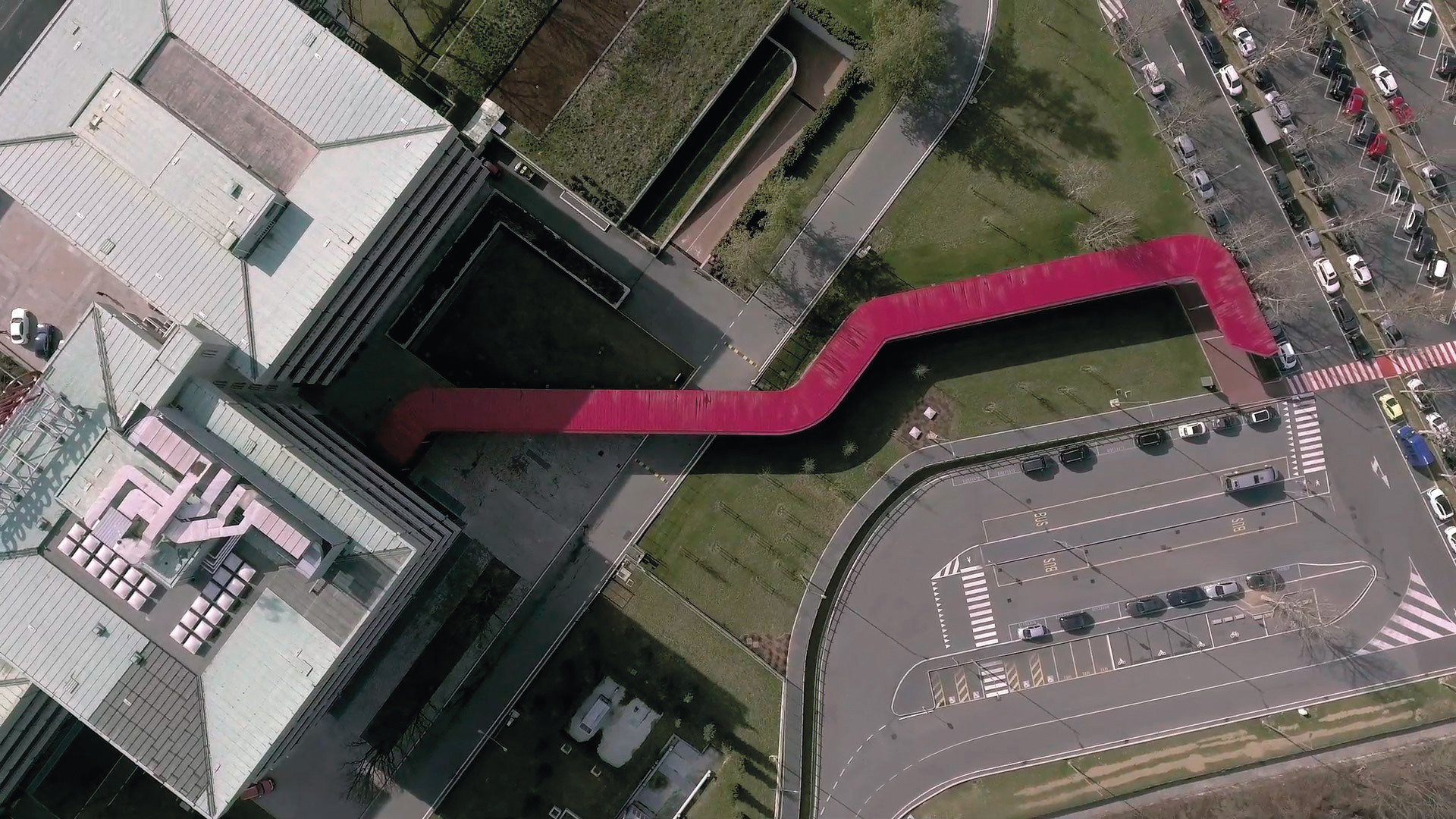 Una vivace tonalità di “nuovo rosso Alfa” annuncia ad alto volume, fluidamente e senza interferire, come una nota d’ouverture, la rinascita nella strada lontana; la bellezza affusolata del volume snello, agile e compatto replica un’identità aziendale ben precisa. Con curve sinuose opulentemente sagomate in un linguaggio espressivo di design, l'”insegna del marchio” striscia nell’involucro esistente, si irrigidisce nella curvatura ed aggiunge dinamicità con la sua forma flessuosa ed irrequieta. La leggerezza di Benedetto Camerana perfora ed innalza la struttura dei fratelli Latis in loco, generando un nesso strategico ed una fiera celebrazione dell’eccellenza della tradizione. Una tettoia metallica rossa, che rappresenta il “biscione” Alfa Romeo, si sviluppa lungo l’intera area, aggiungendo nuova vitalità attraverso la grigia uniformità formale degli edifici industriali storici, mantenuti con cura e riqualificati sotto la guida delle autorità locali per la tutela dei beni. Il vecchio layout del flusso è stato completamente modificato ed il fil rouge, quale leitmotiv, traccia un nuovo percorso. Un’eleganza delicata seduce ed affascina, accogliendo i visitatori al nuovo ingresso, sul lato a nord, e conducendoli all’interno dell’esposizione, sul lato diametralmente opposto. Con una spirale verticalmente ascendente nello spazio museale, tre diversi segmenti, ispirati a tre principi guida, narrano in modo strategico e scenografico l’essenza dell’azienda: Timeline, ritratto della continuità storica e industriale del marchio; Bellezza, sintesi di design classico e stiloso, e Velocità, mostra di elevata ricerca tecnologica e leggerezza. Il viaggio termina con una sala multimediale e film in realtà virtuale su schermo a 360°. Il primo piano si apre con un assortimento variegato di servizi collaterali, archivio, libreria, negozi, caffè, spazi per eventi, centro di documentazione ed una showroom con delivery area e prove su pista.