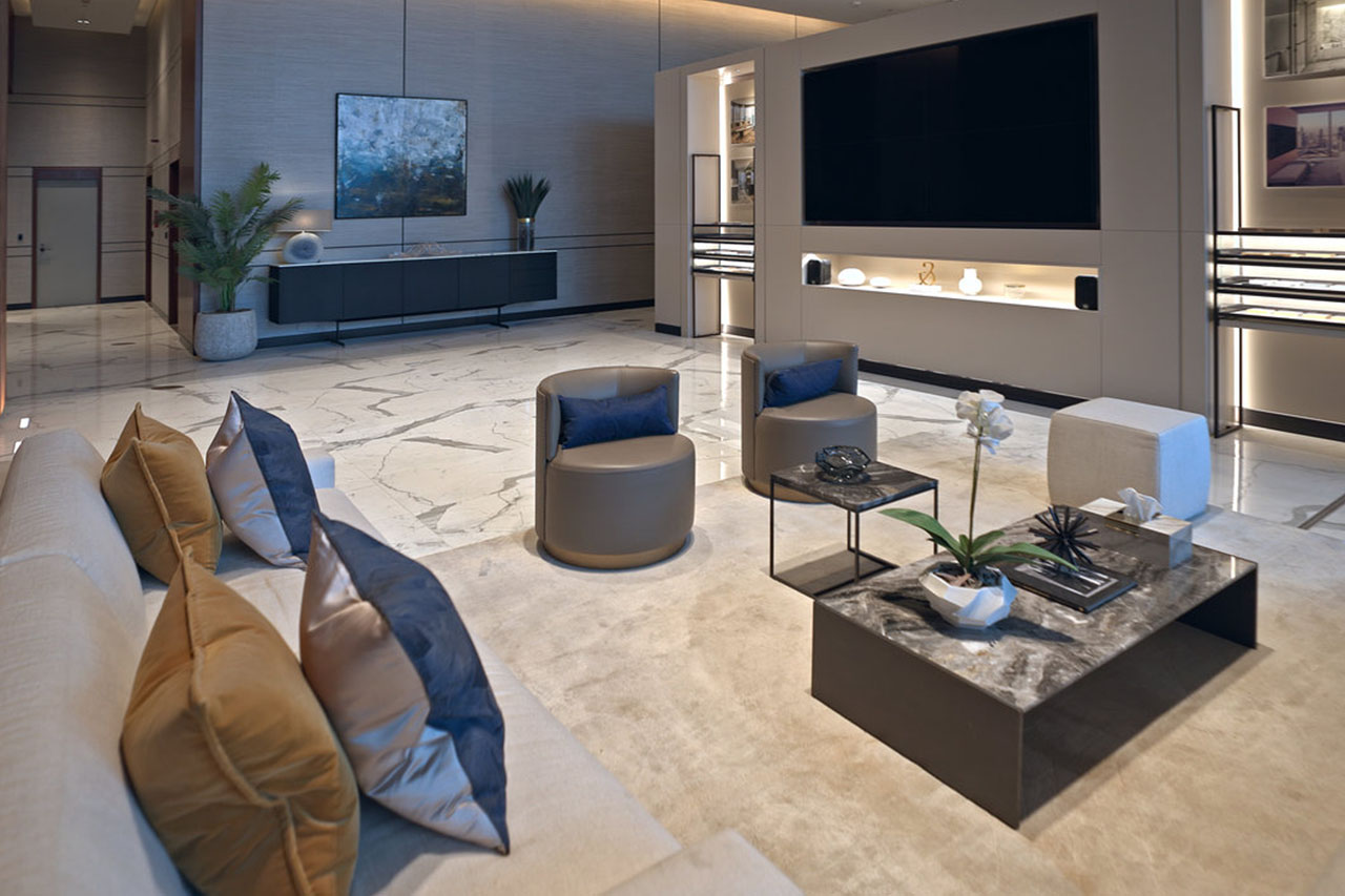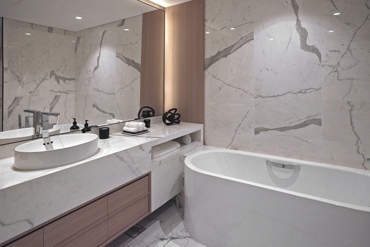 Fiandre Architectural Surfaces, con il partner distributore Arteco Ceramics, ha fornito superfici ceramiche innovative e su misura, tra cui il Calacatta Statuario e il Travertino Maximum, utilizzati in spazi comuni, appartamenti e finiture decorative. Le soluzioni hanno unito eleganza, sostenibilità e riduzione degli sprechi, contribuendo all’obiettivo di certificazione LEED Gold e alla visione degli Emirati Arabi Uniti verso le emissioni zero entro il 2050.