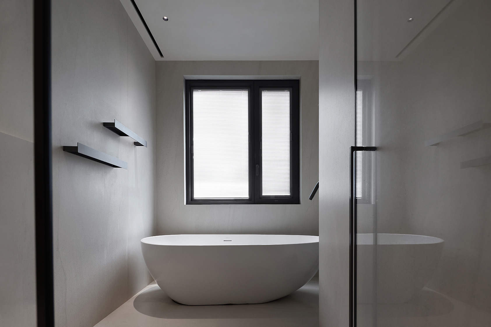 Queste superfici si distinguono per la resa cromatica equilibrata, caratteristica che consente di creare fondali neutri e sofisticati sui quali si inseriscono arredi e volumi architettonici. Nei bagni, il gres porcellanato contribuisce a generare ambienti essenziali e rilassanti, dove le grandi lastre valorizzano soluzioni total look che coinvolgono pavimenti, rivestimenti, arredi e superfici operative e dialogano con elementi sanitari scultorei, come la vasca freestanding, enfatizzando la sensazione di ordine e pulizia visiva.